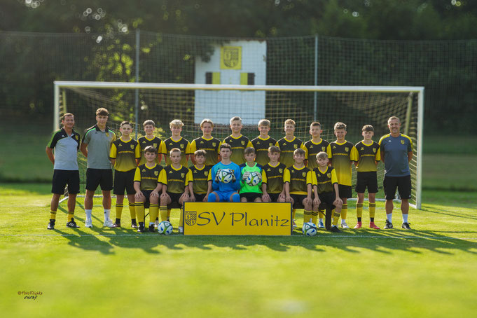 Hintere Reihe von links: Sebastian Wohlgemuth (Co-Trainer), Ferrell Hamann (Trainer), Luke I., Max M., Rocky W., Jacob N. (Kapitän), Karl W., Paul V., Stijn W., Oskar A., Julian S., Markus A., Robert Stemmler (Co-Trainer)